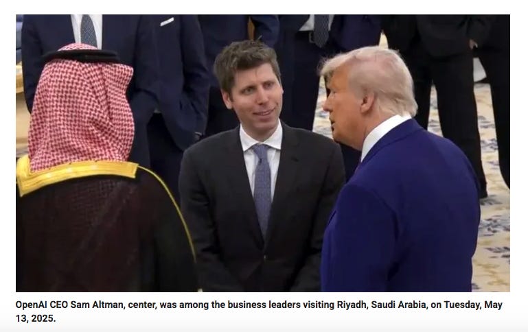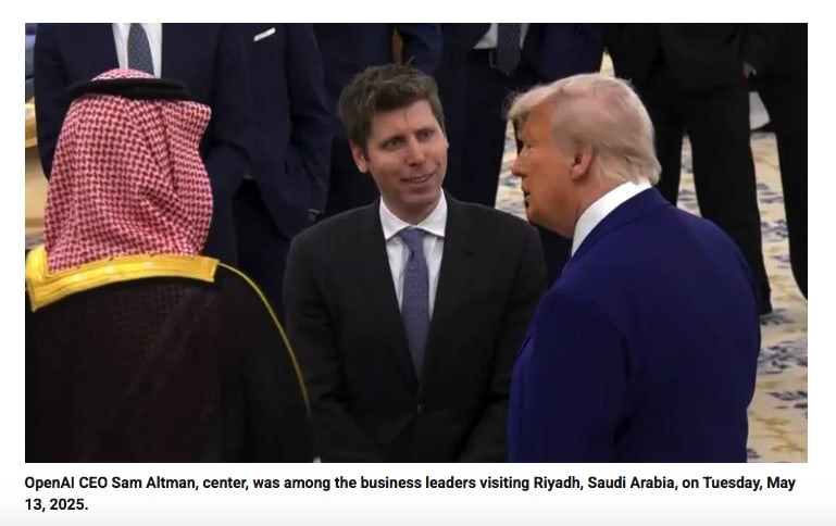 Saudi Crown Prince Mohammed bin Salman, Sam Altman, and Donald Trump at the Saudi-US Investment Forum last May 13.