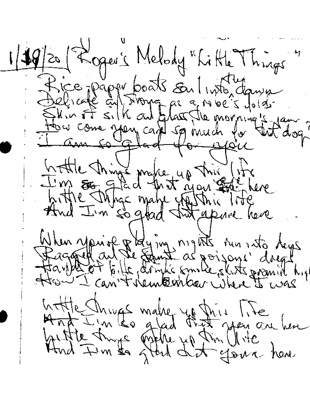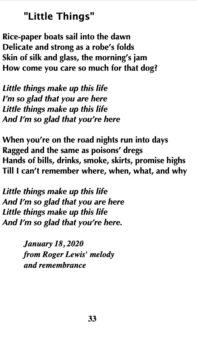 Above, Lyrics that came to me the day after Roger first played the melody that became the “Little Things that we recorded in two sessions of August 2021.