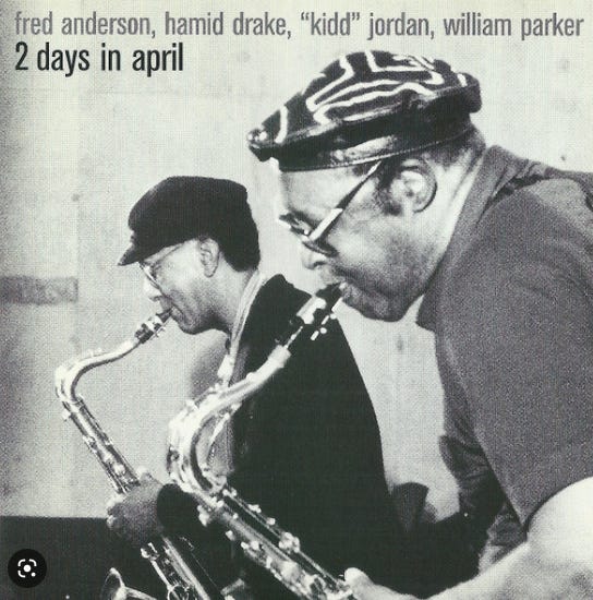 0:00 Excerpt from “11:55”, Track 2 from a Concert with Kidd Jordan, Fred Anderson, Hamid Drake and William Parker at the University of Massachusetts in Amherst, April 1, 1999, as presented on the double-CD album from Eremite Records, Two Days In April.