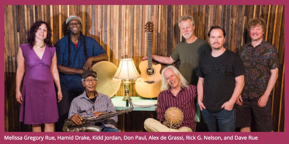 2:25 “Kidd’s voice was above all else adaptable.” Intro to “Semaya In The Blues”—Kidd and Hamid Drake and Alex de Grassi improvising for the soundtrack to Melissa Gregory Rue’s documentary, “Live Out Loud”, about three artists-in-progress, each transitioning from homelessness, each making his or her first movie, in Portland Oregon. Recorded June 5, 2018 at Rick G. Nelson’s Marigny Studio in New Orleans.